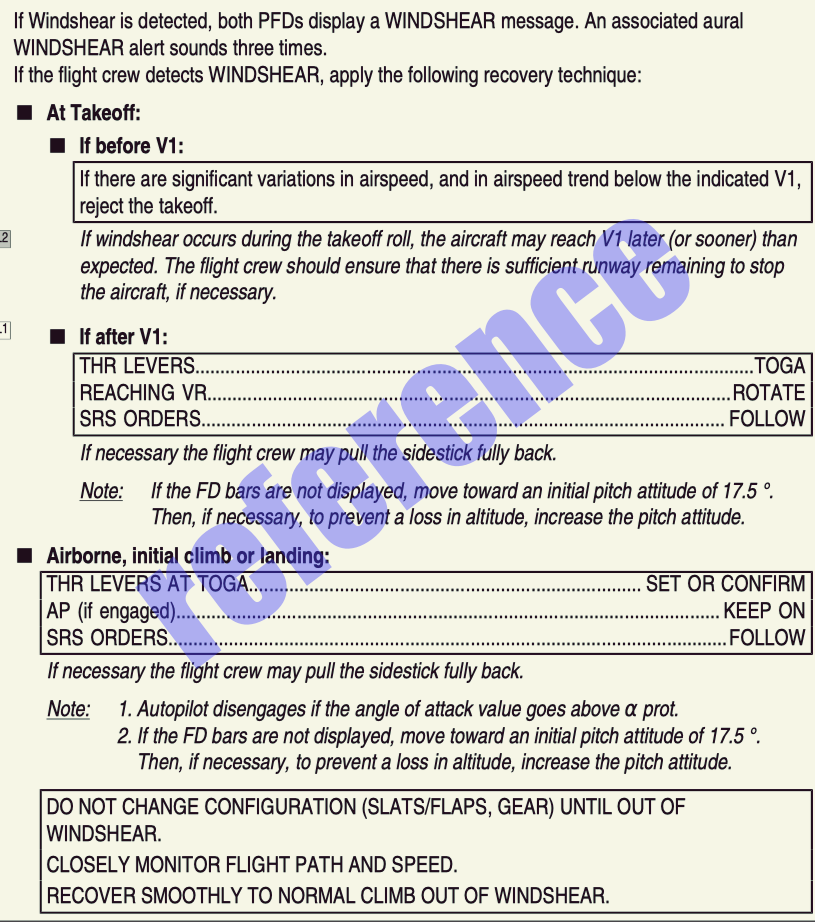 According to the Airbus FCTM, there are operational recommendations regarding windshear.