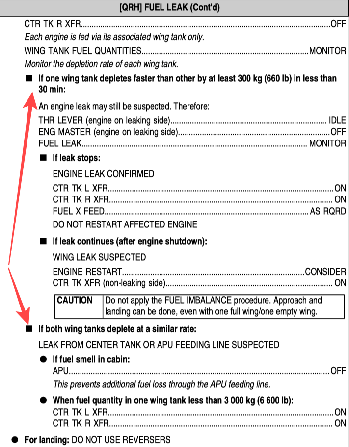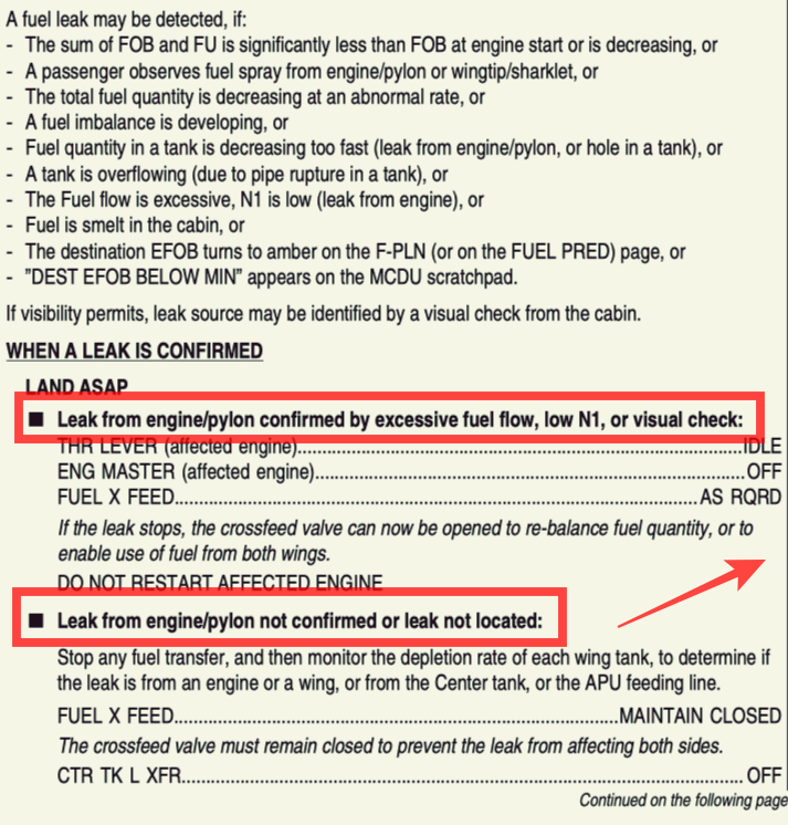 If we detect a fuel leak late, the ECAM advisory will trigger and guide you through the fuel leak procedure. The ECAM advisory typically activates when there is a difference between wing fuel quantities exceeding 1500 kg.