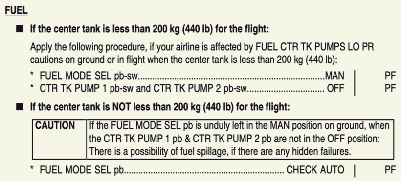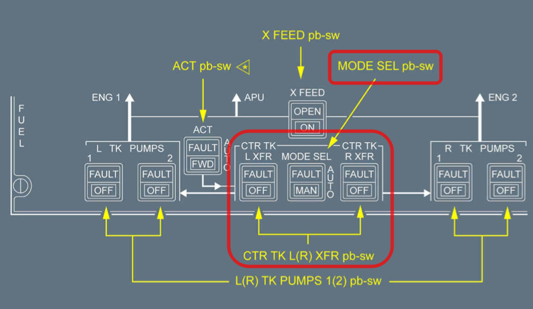 When dealing with this procedure, it's important not to confuse the Mode Selector Pushbutton and the Fuel Crossfeed Pushbutton. However, the descriptions in the FCOM can be confusing compared to the QRH.