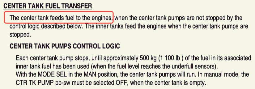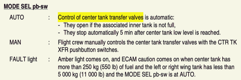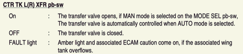 while center tank fuel transfer controls the flow of fuel from the center tank to the innter tanks.