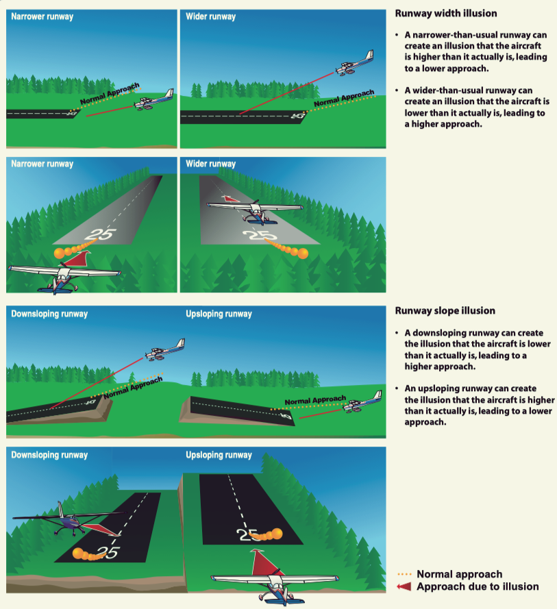 While there are other illusions related to runways, such as runway slope, pilots typically rely on instruments like the Instrument Landing System (ILS). However, if the runway has a significant upslope, pilots may instinctively flare early.