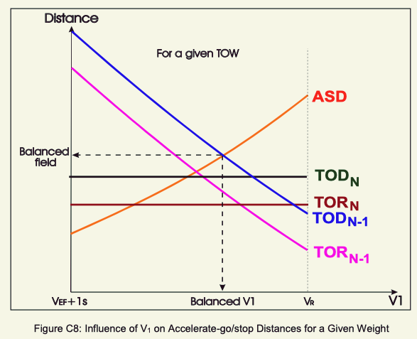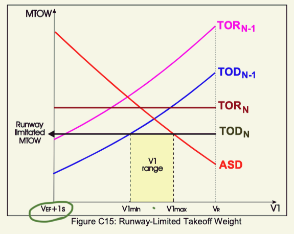 Conversely, a lower V1 limits the maximum takeoff weight by the takeoff distance.