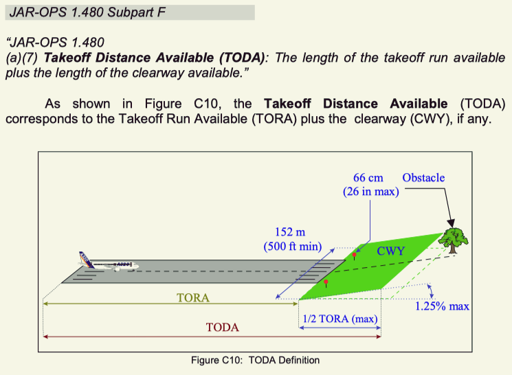 and the available takeoff distance can include the clearway.