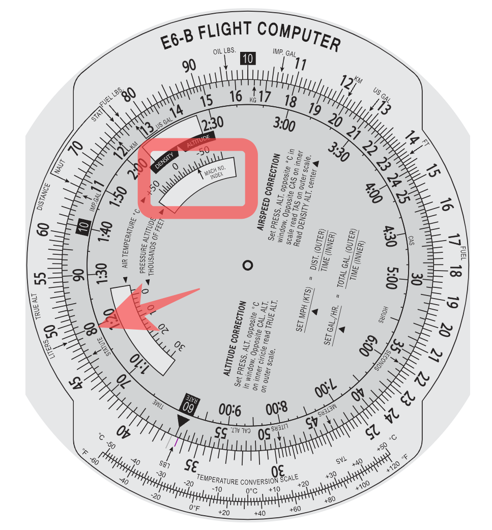 We can get TAS using E6B, simply put maxh number index of E6B to the current temperature. (SAT) and then we can just read the TAS at the scale outside while finding the current mach number on the inner scale,