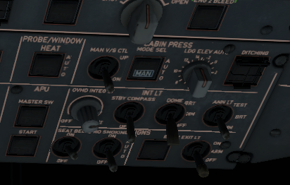There is a manual V/S control knob which can be used after selecting the cabin pressure mode selector manual mode.