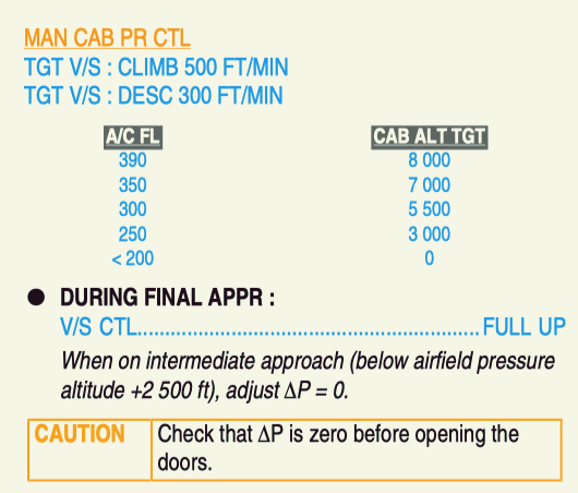 There is another procedure that involves manual cabin pressure control.