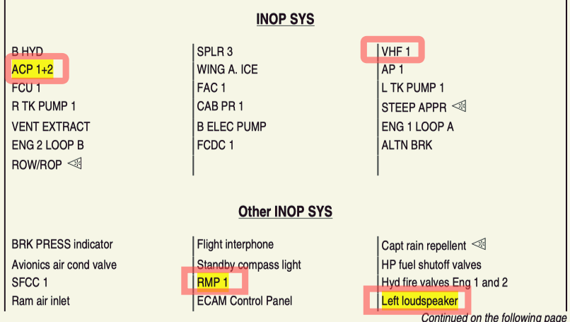 Looking at the INOP system table, ACP 1, ACP 2, and RMP 1 are inoperative.
