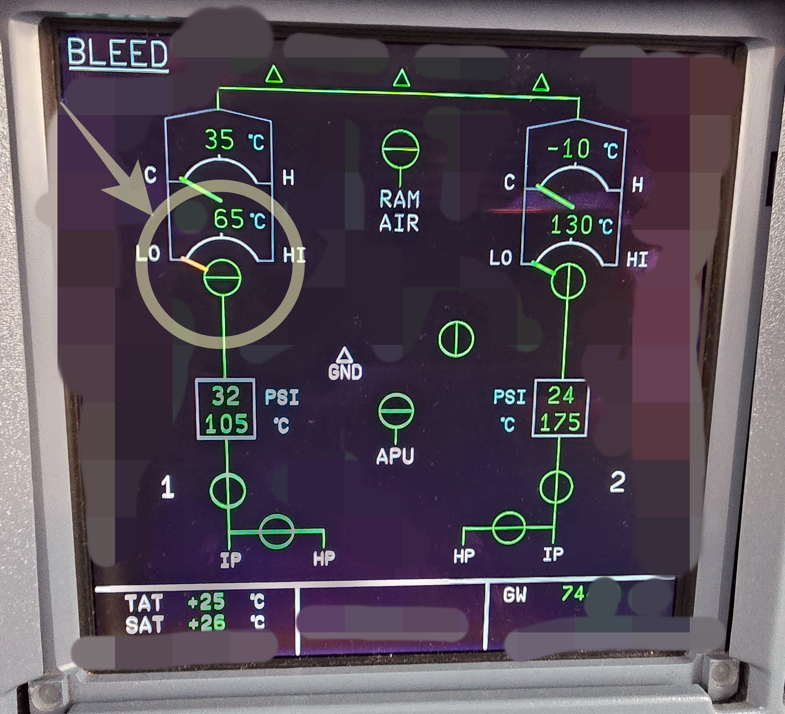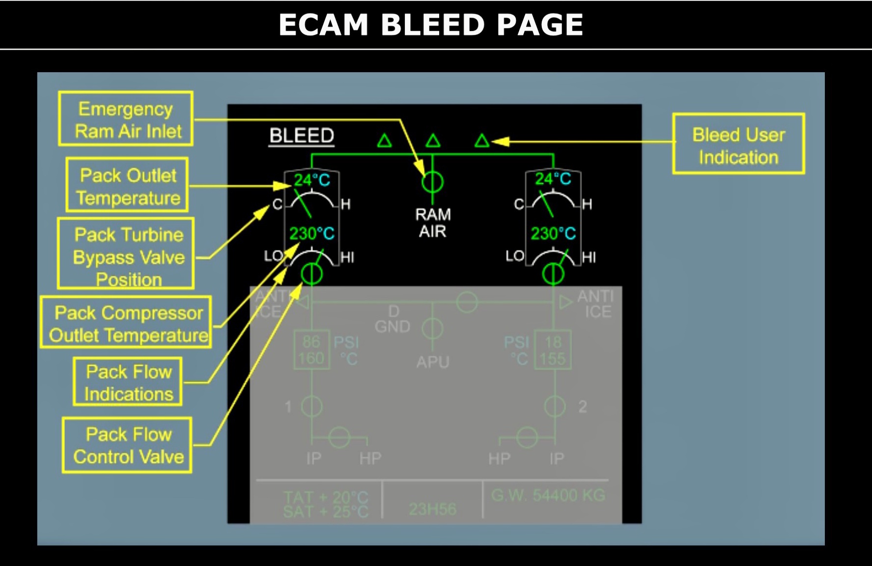 Other conditions, such as pack outlet temperature, pack compressor outlet temperature, and ram air inlet, are relatively easy to identify if we refer to the FCOM.