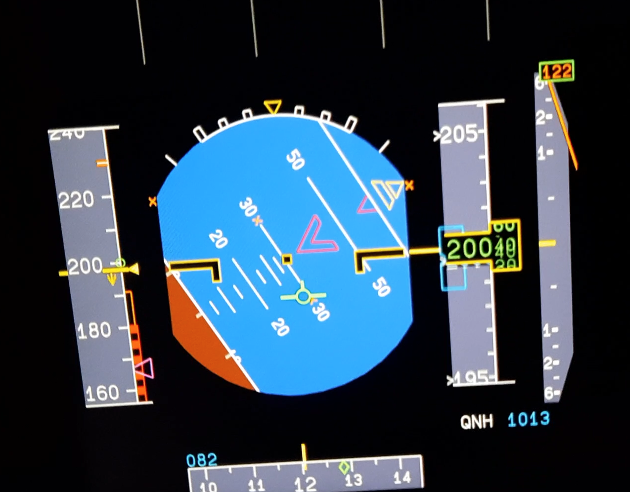 we had to monitor the g-load carefully, as displayed at the bottom of the system display. When g-load exceeded specific thresholds, it signaled excessive force. Particularly when recovering from a nose-low situation, pulling up too abruptly pushed the g-load beyond safe operational limits.