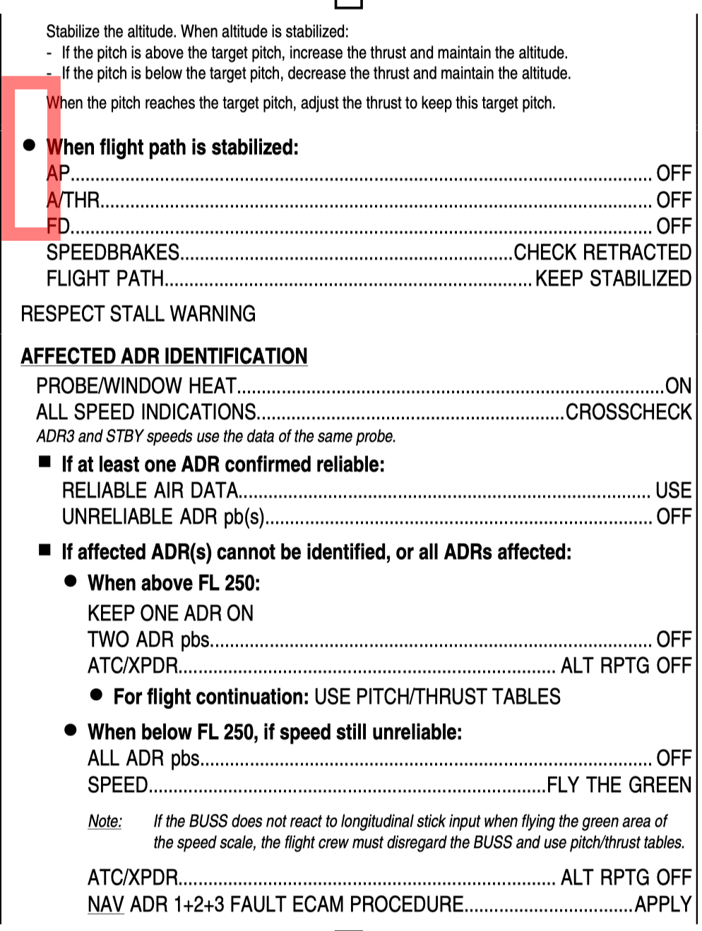 If we look into unreliable airspeed QRH, there are BLACK DOTs and BLACK SQUAREs.