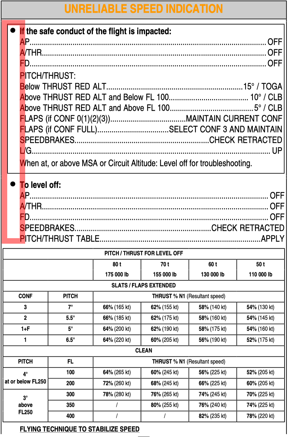 but unreliable speed memory item has to be done only If the safe conduct of the flight is affected,