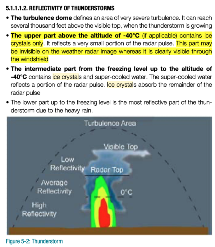 However, in the 2016 Safety First Magazine article titled “Optimum Use of Weather Radar”, Airbus clarified that weather radar cannot detect ice crystals, as these particles are extremely small and have very low radar reflectivity. It also emphasized that ice crystal icing conditions can exist in areas showing no radar returns, urging pilots to avoid convective cloud tops and anvil regions even when the radar appears clear.