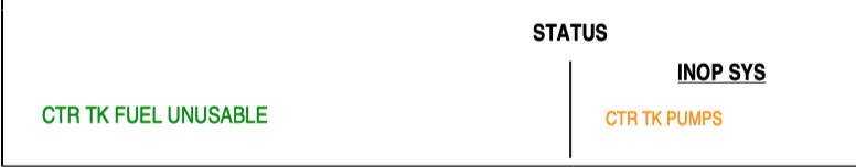 | Failure Indications | ECAM message: FUEL CTR TK PUMP LO PR. | ECAM message: FUEL CTR L(R) XFR FAULT. |