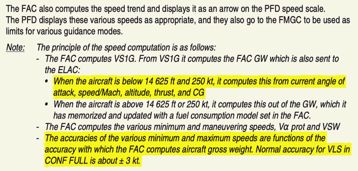 However, in these type of A320 aircrafts, the FAC also independently computes its own gross weight and CG based on aerodynamic data. This serves as a backup for speed computation in the event of a dual FMS failure. Nonetheless, the FAC does not utilize the computed VLS speed to display it on the PFD.