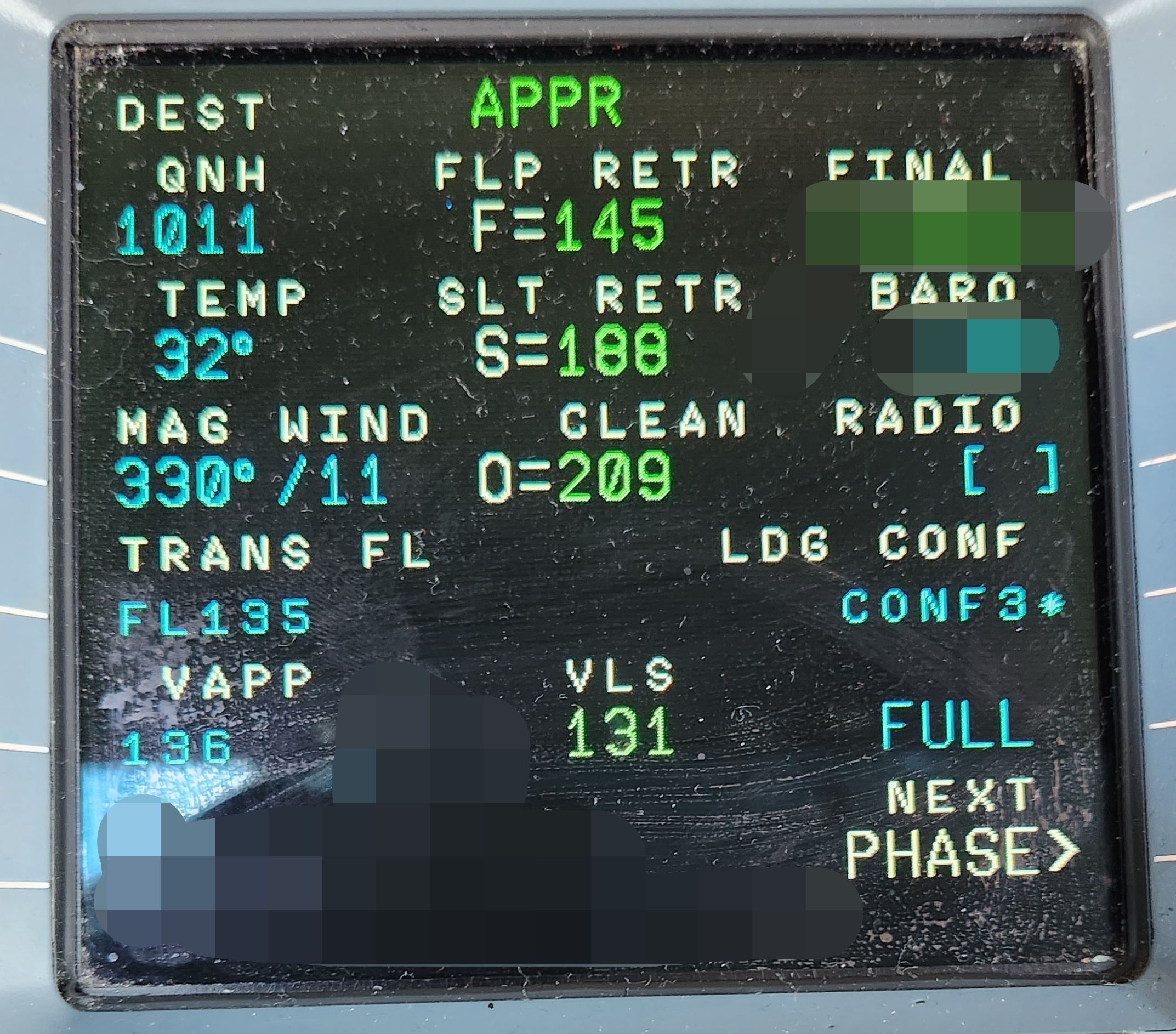 As shown in the following pictures, even though Vapp is the same at 136 knots on the FMGC and PFD, upon closer inspection, the VLS values differ. The FMGC indicates VLS as 131 knots, while the PFD displays VLS as 127 (or 126 knots), resulting in a VLS+10 knots, according to the PFD's calculation.
