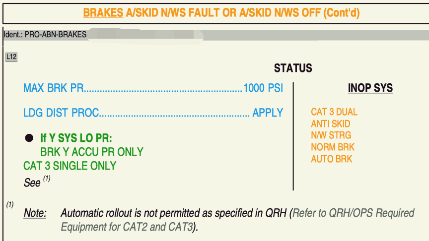 The ECAM status indicates 'inop system cat 3 dual' rather than 'cat 2 inop system' in this scenario