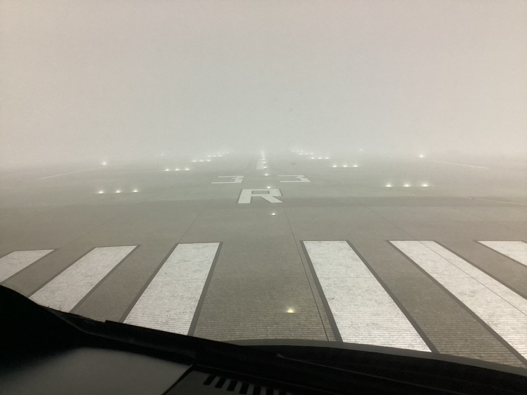 We can count the centerline lights and estimate the RVR (Runway Visual Range).