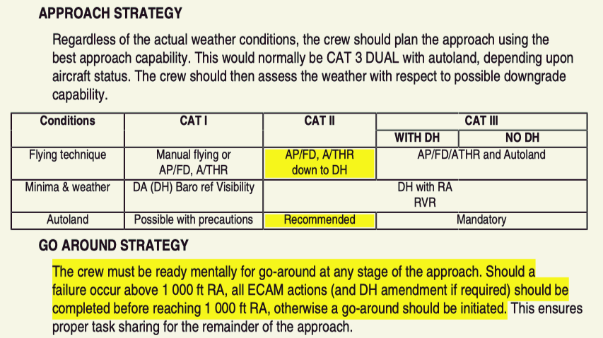 However, with recent Airbus procedures, a go around must be initiated even in the presence of one of these failures.