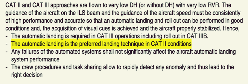 So in case of manual landing with ILS category II, AP should be disconnected no later than 80AGL.