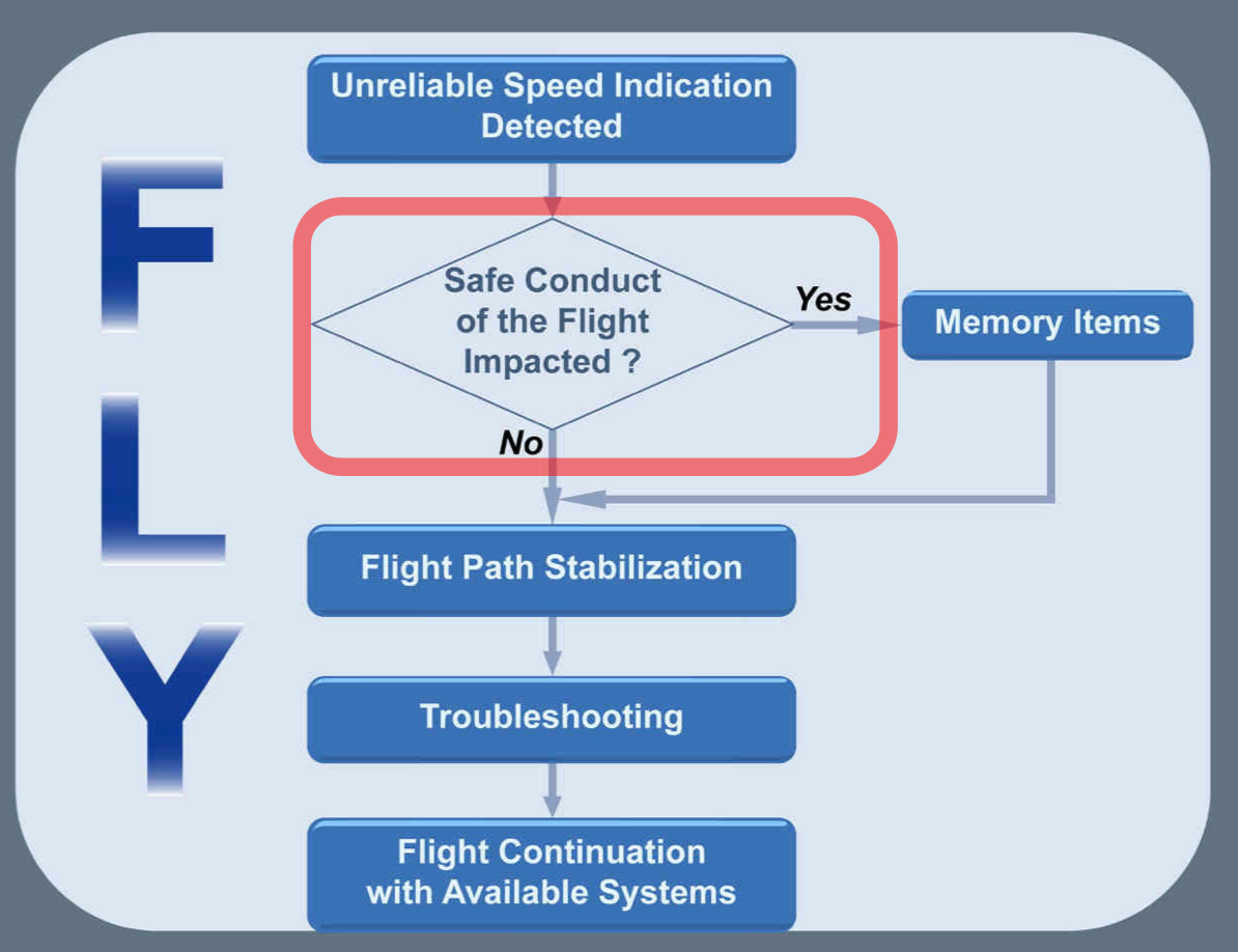 but unreliable speed memory item has to be done only If the safe conduct of the flight is affected,